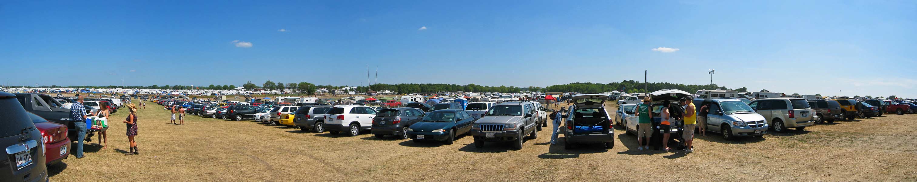 The day parking lot served as a tailgate site for some attendees as well. The camping areas as well as the entrance gates can be seen in the distance.